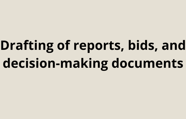 Strategic preparation and structuring of reports, proposals and submissions that strengthen clarity, credibility, and evaluation readiness.